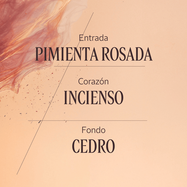 El aroma del majestuoso Cedro y el toque del misterioso Incienso con una intensidad especiada, matices amaderados y notas ambarinas.